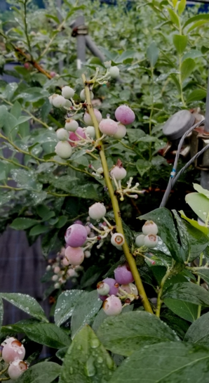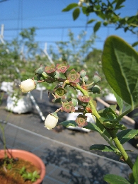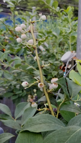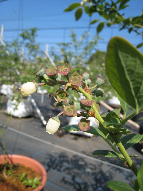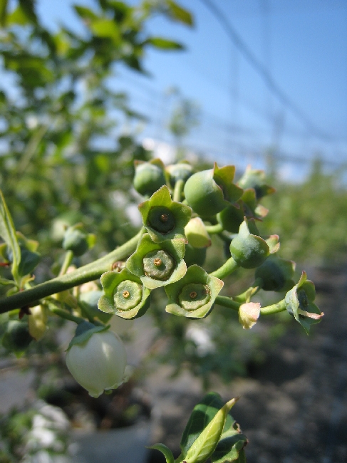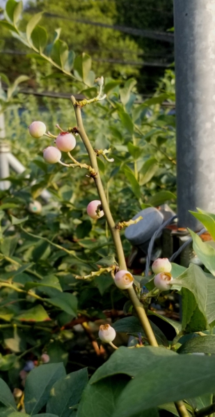早生品種のハイブッシュ系は、受粉が終わり果実として大きくなりつつあります。