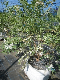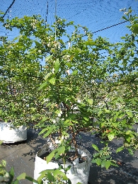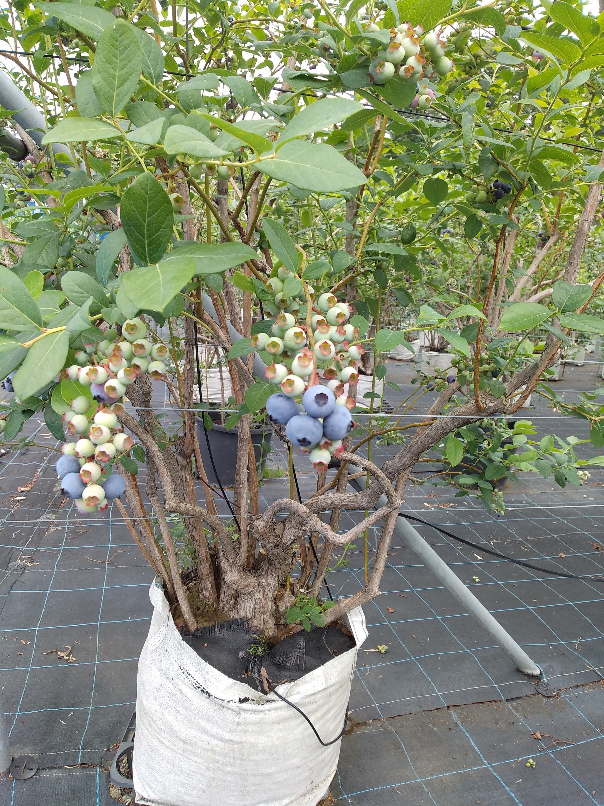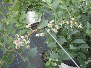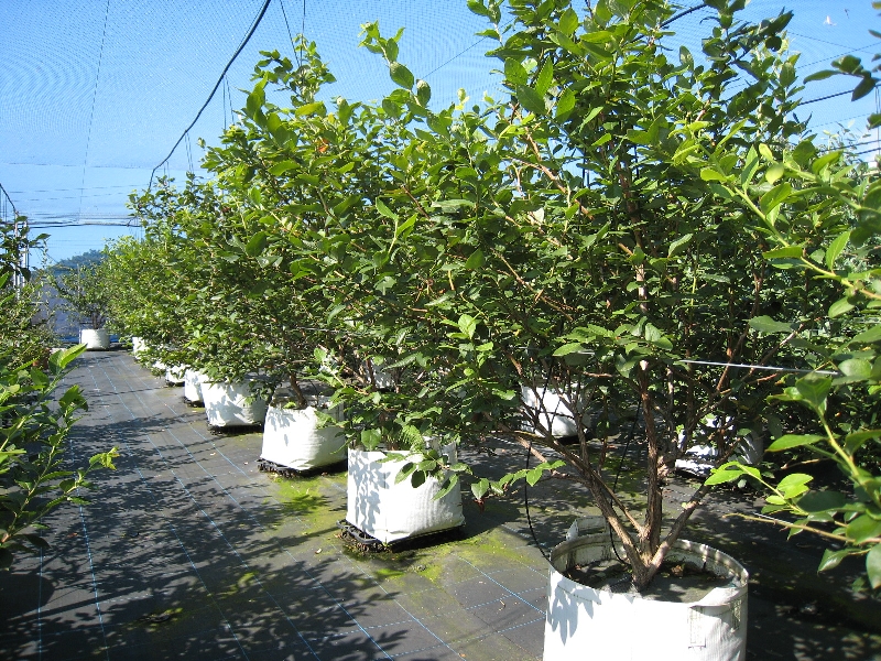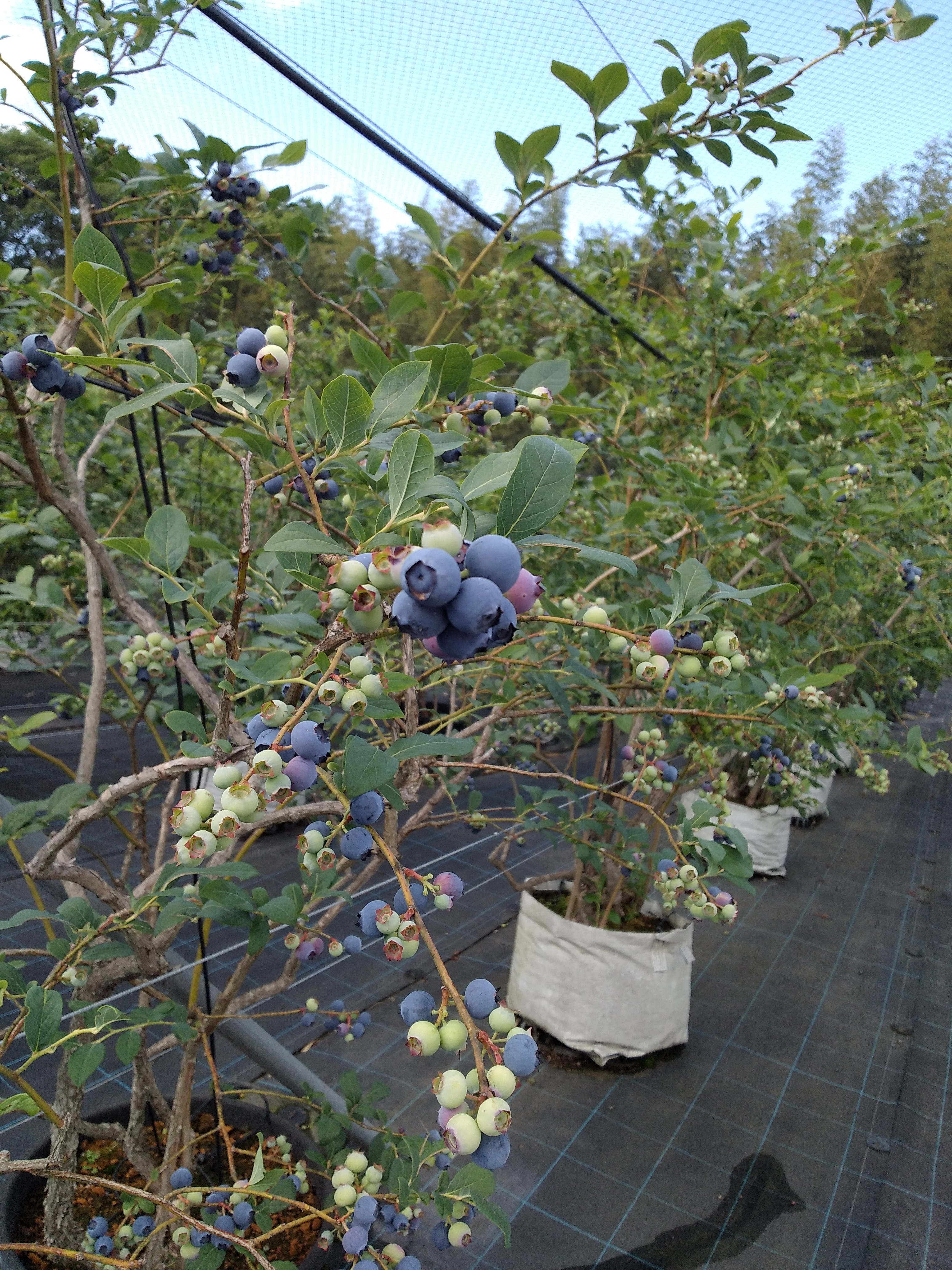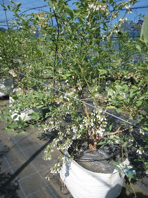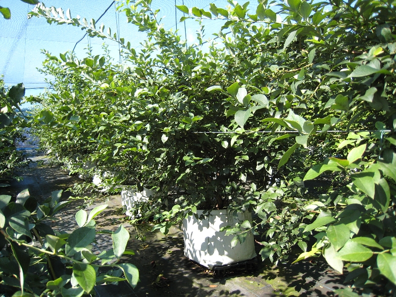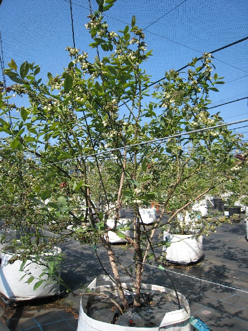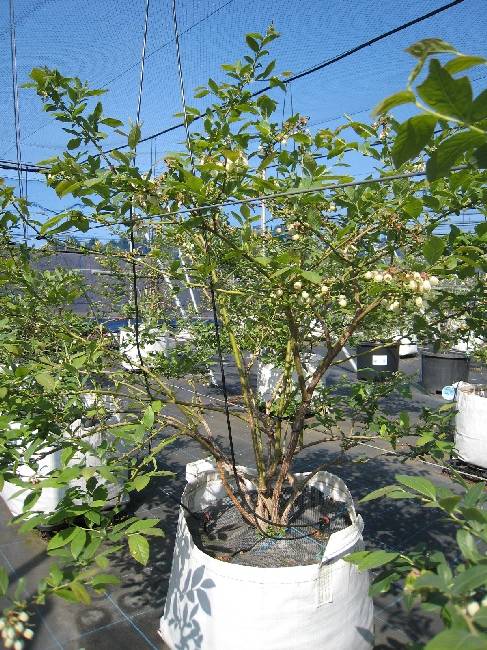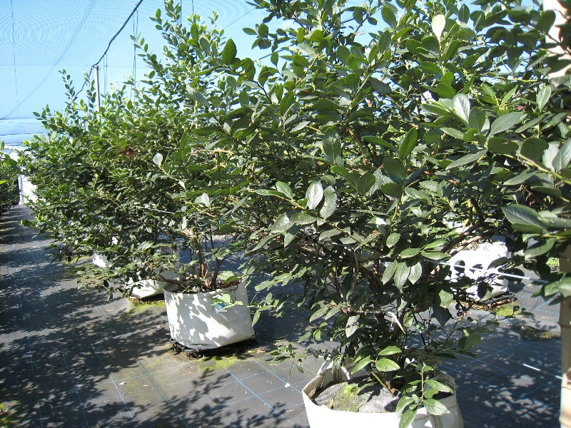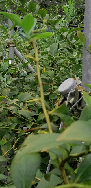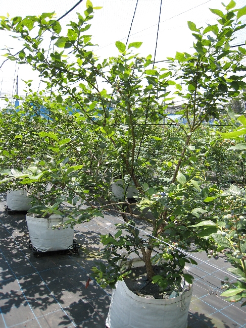 収穫が終わり、夏の陽射しを受けて成長しているブルーベリーです