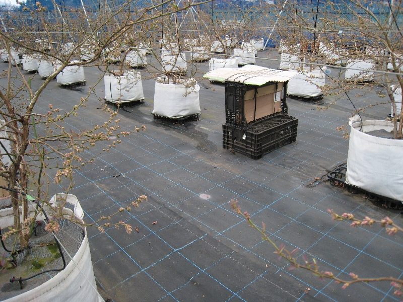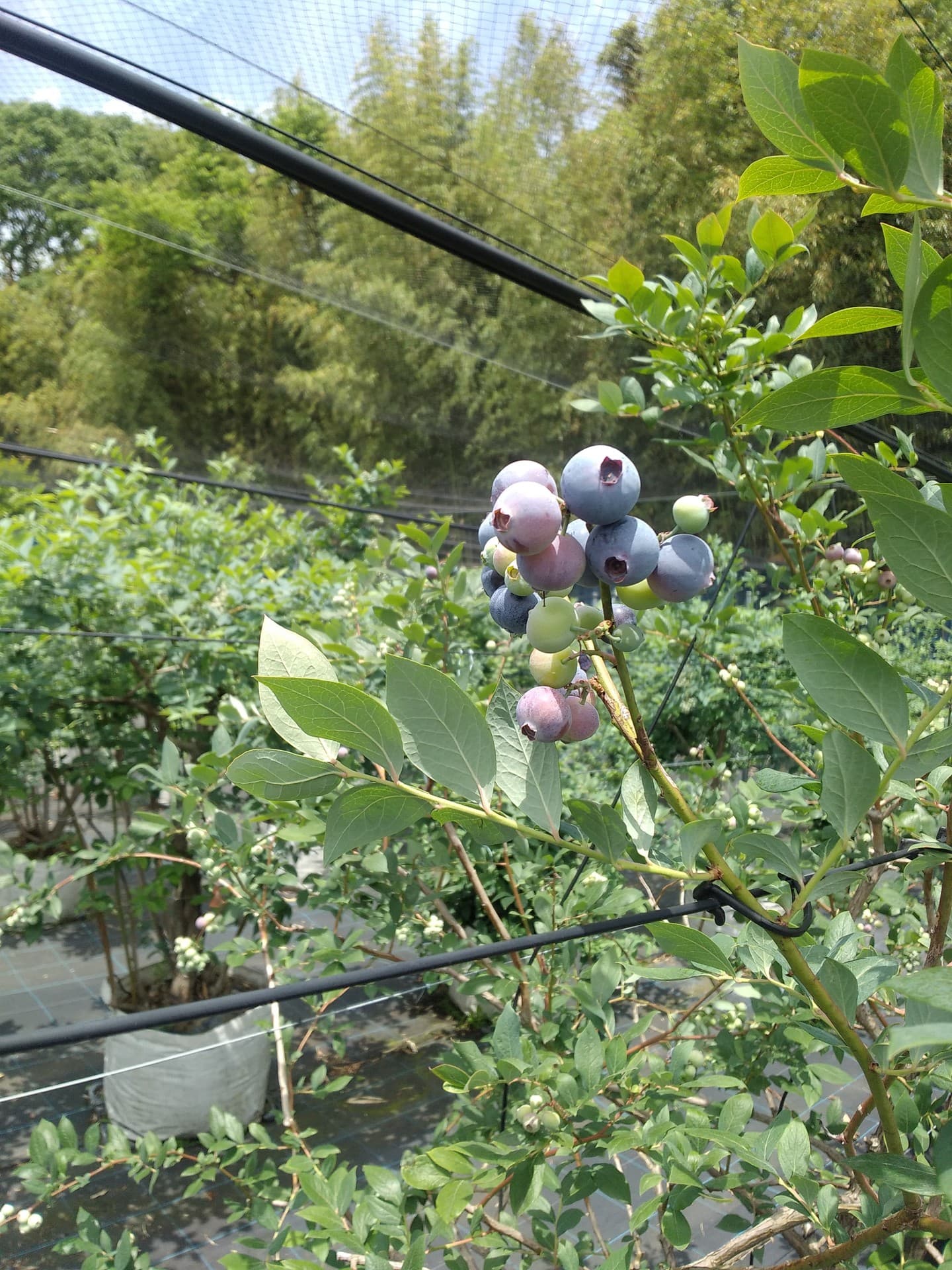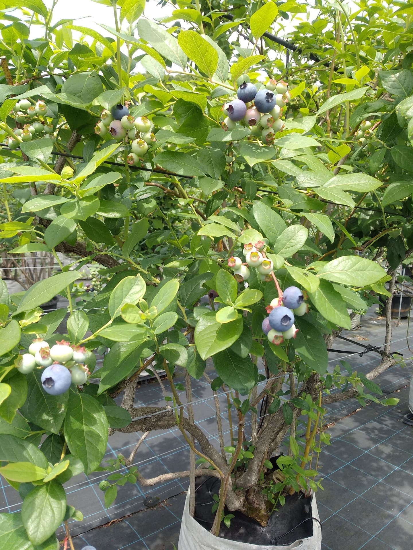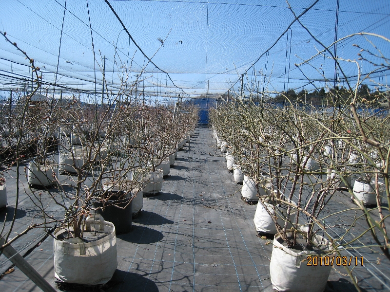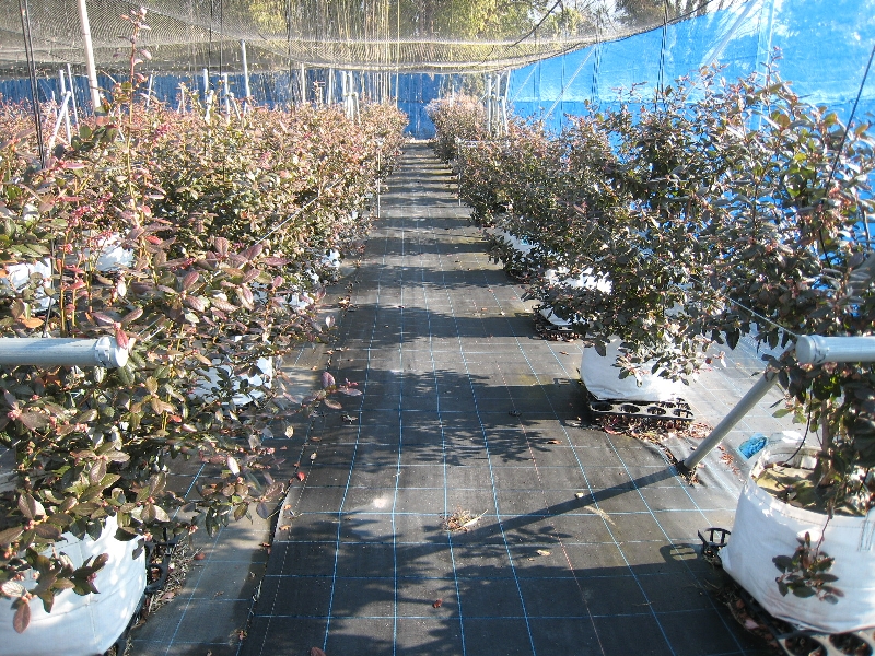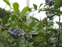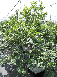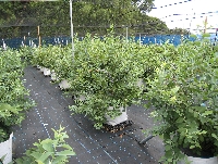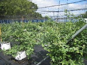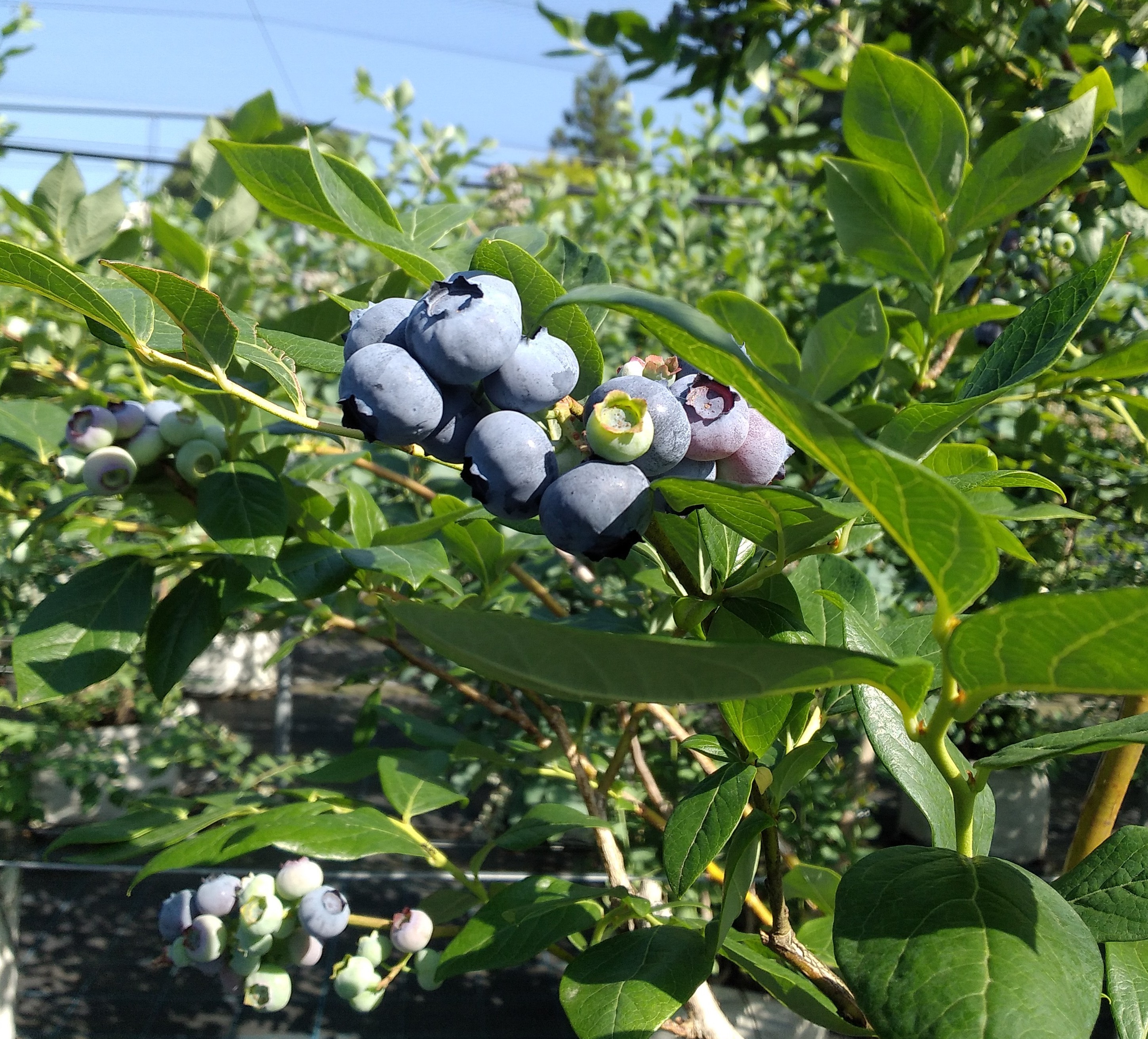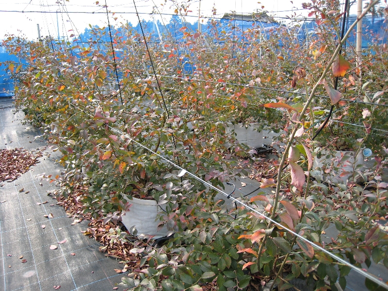 収穫が終わり、夏の陽射しを受けて成長しているブルーベリーです