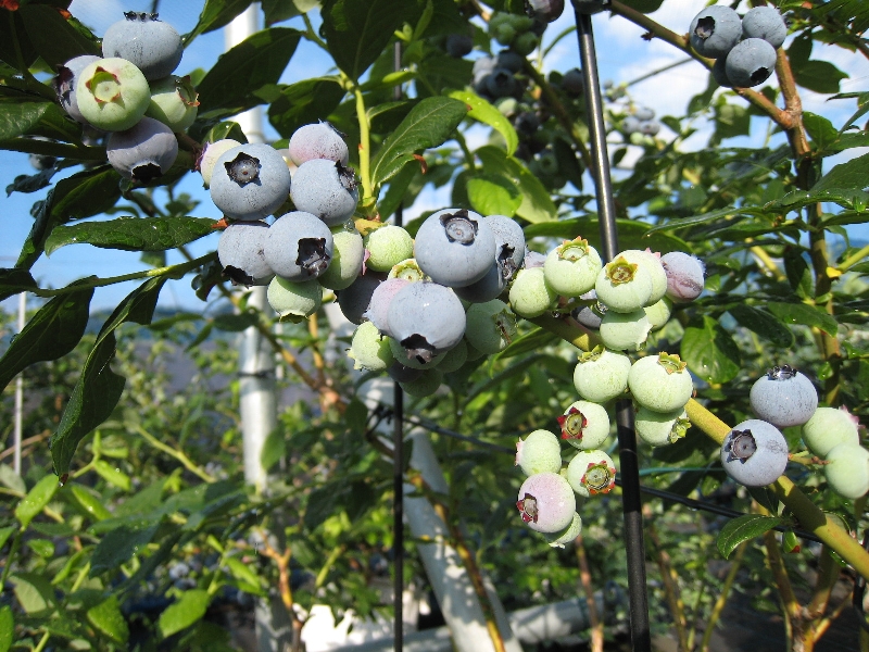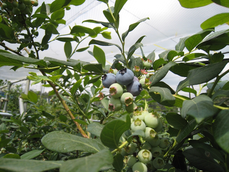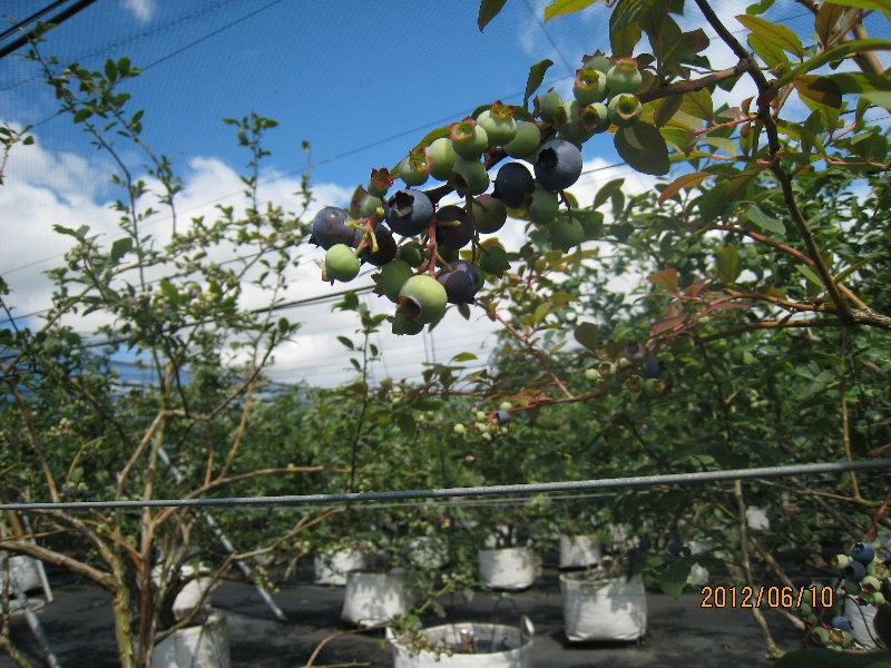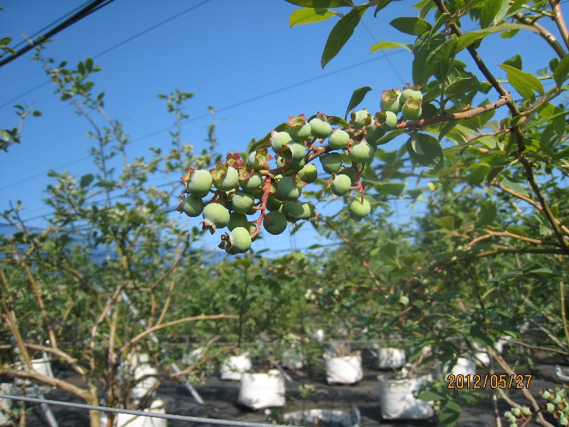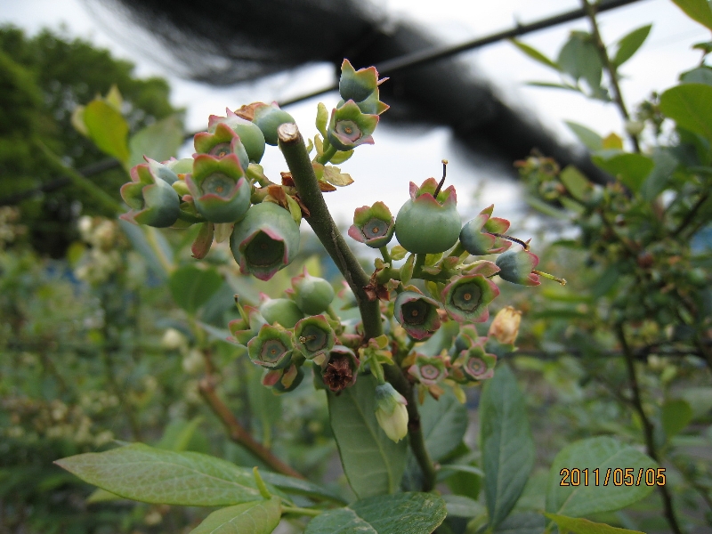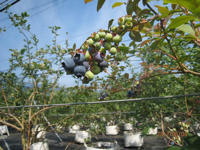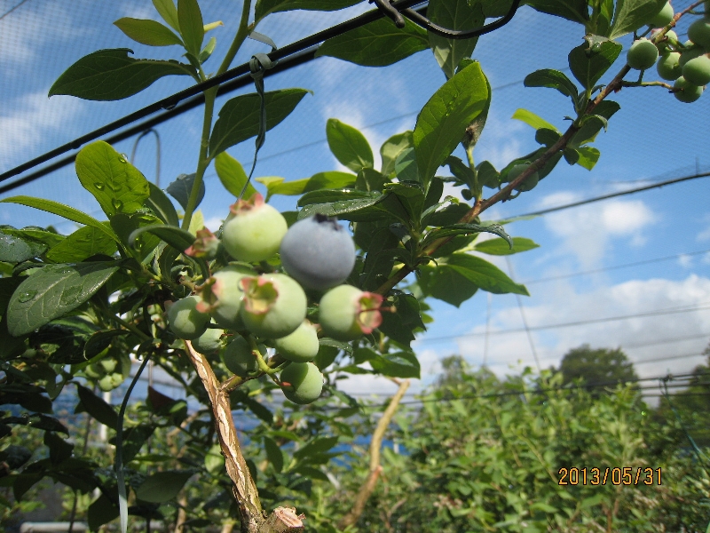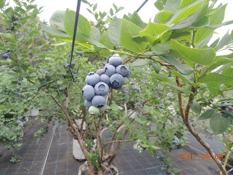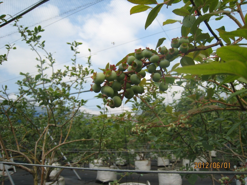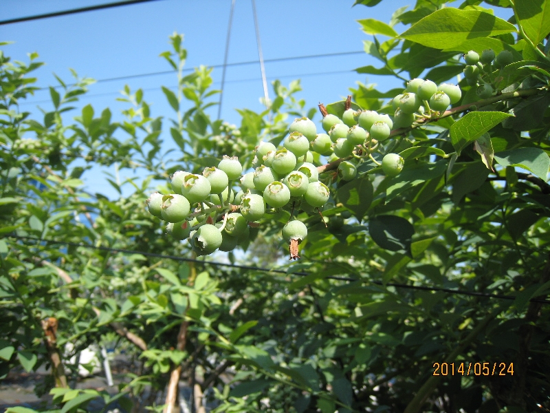 5月後半は気温も上昇し適度な雨にも恵まれハイブッシュ系品種は、果実が肥大して