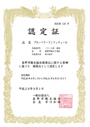 本年4月にベリー工房真味(マミ)で作っているブルーベリーコンフィチュールが「秦野市優良農産物」に登録認証されました