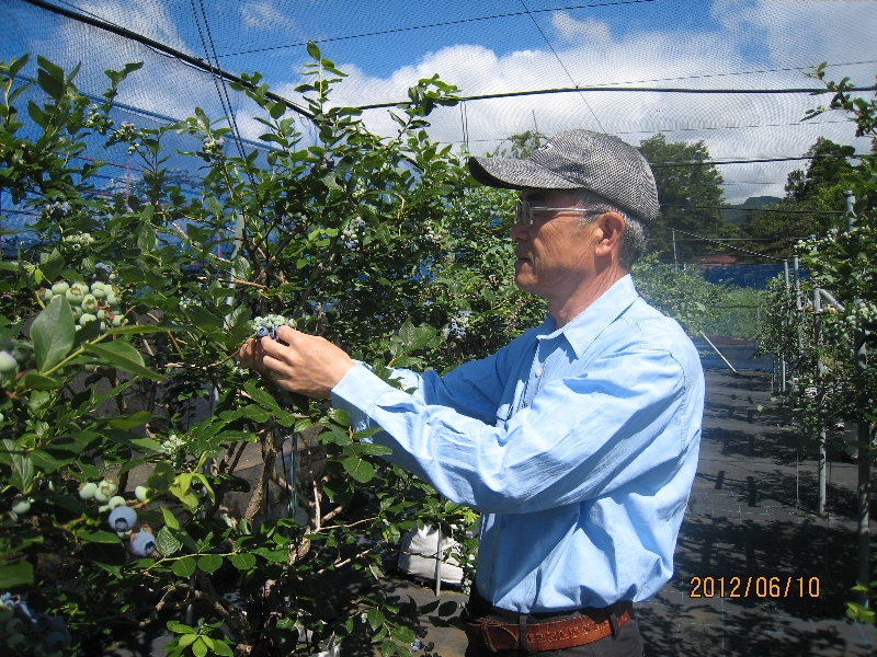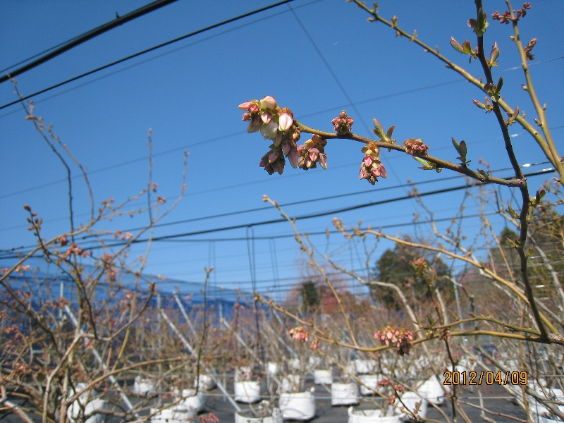 桜の開花が10日も早かったので、ブルーベリーの開花も早く収穫が始まりました。