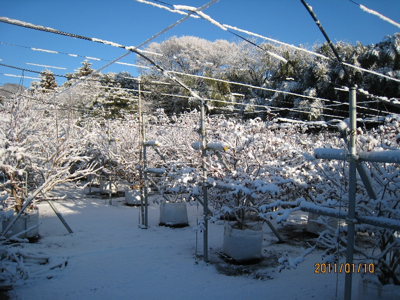 寒い日の選定作業は、手がかじかんで感覚がなくなる思いですが、大粒ブルーベリーの収穫を願って2月末まで続きます。