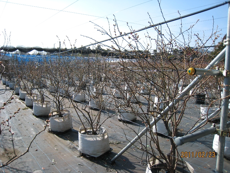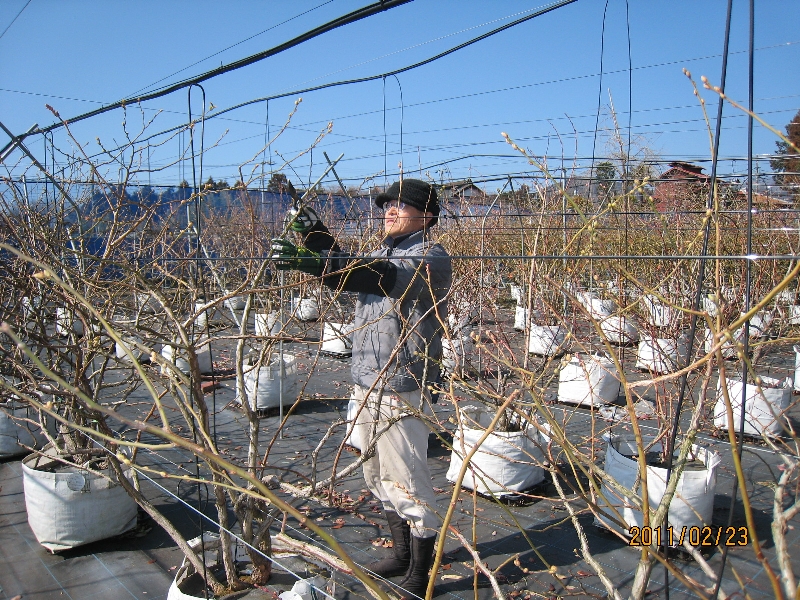 2月は暖冬でブルーベリーの落葉は進みませんが、剪定作業を始めました。