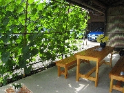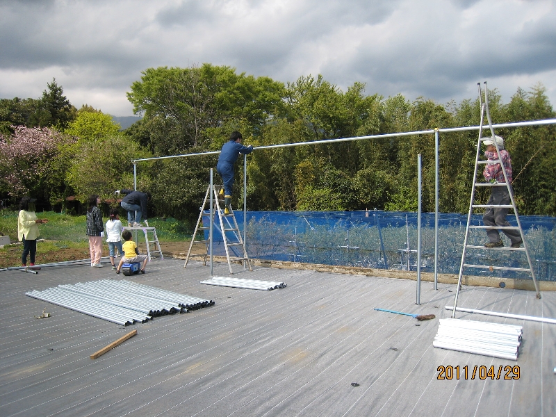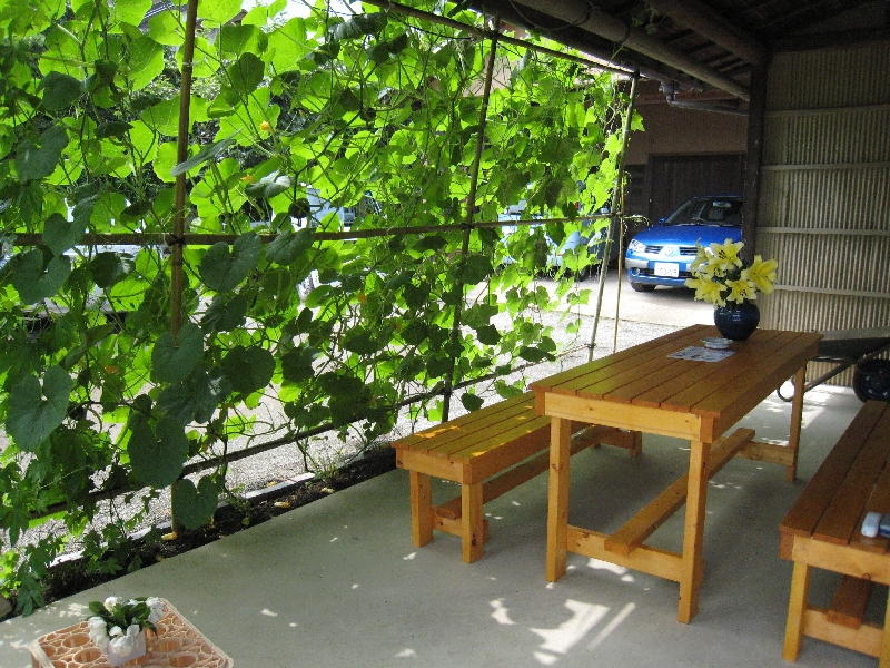 グリーンカーテンで日除けの休憩所