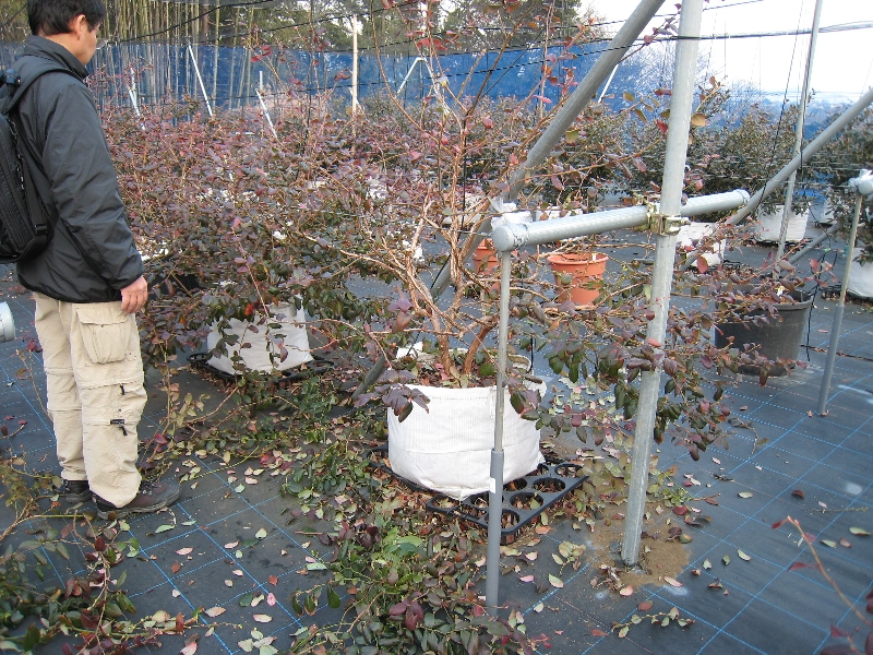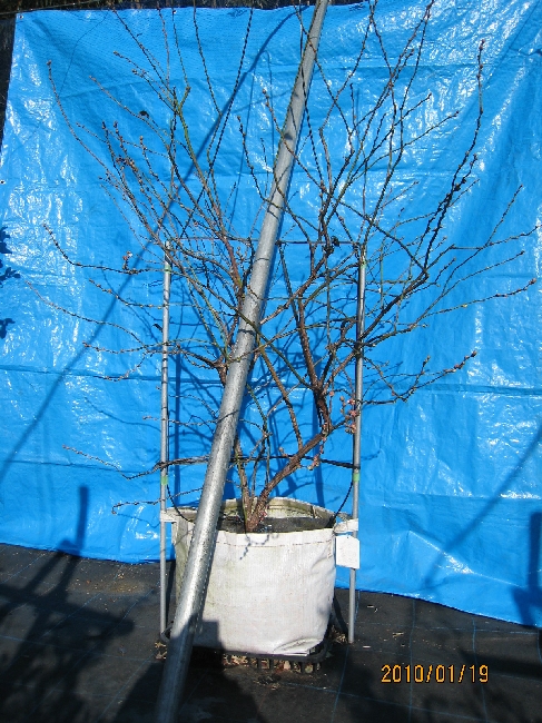 ・剪定後のミスティー:込み合っている枝の削除、花芽を約半分に減量して、人工的に落葉させた状態です