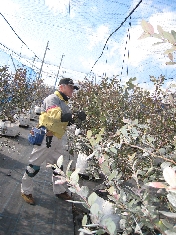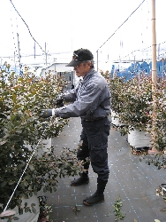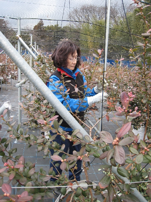写真は、早生品種のサザンハイブッシュ系の「ミスティ」の剪定の様子です。