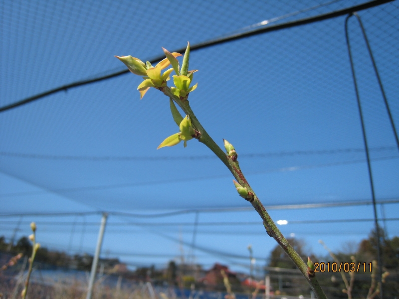 この季節、ブルーベリーは若葉が芽吹いて元気に成長を始めています。