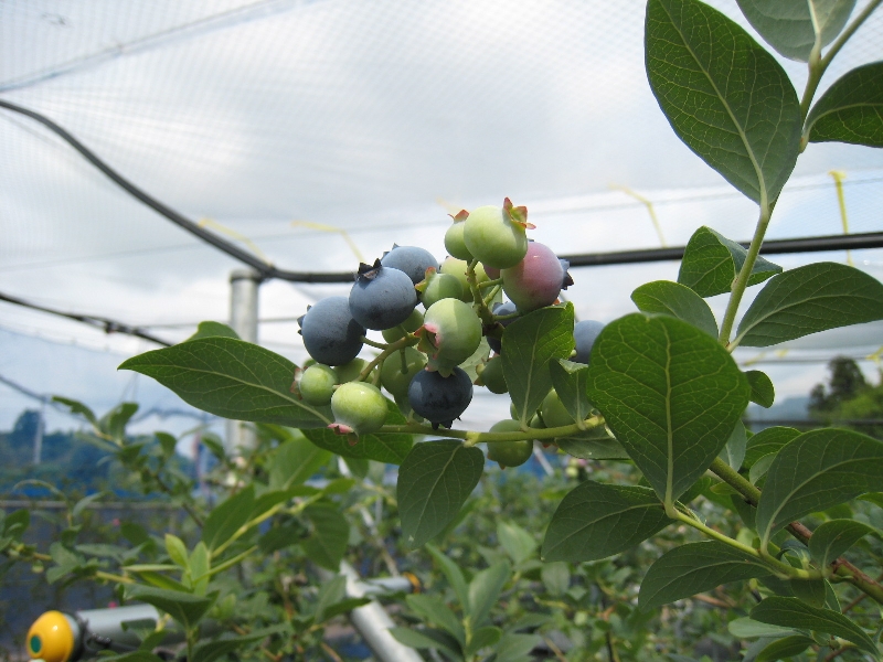今年は梅雨明けが異常に早く、6月下旬より暑い日が続き、生産者にとっては過酷な夏になりましたが、当園は点滴潅水を行っているため水不足の影響を受けることなく、ブルーベリーは太陽をいっぱい浴びて、例年以上に美味しく仕上がりました。