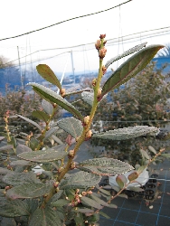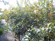・剪定前のミスティー(サザンハイブッシュ):ほとんど落葉せず、枝も込み合って、花芽も過剰に着いています