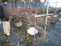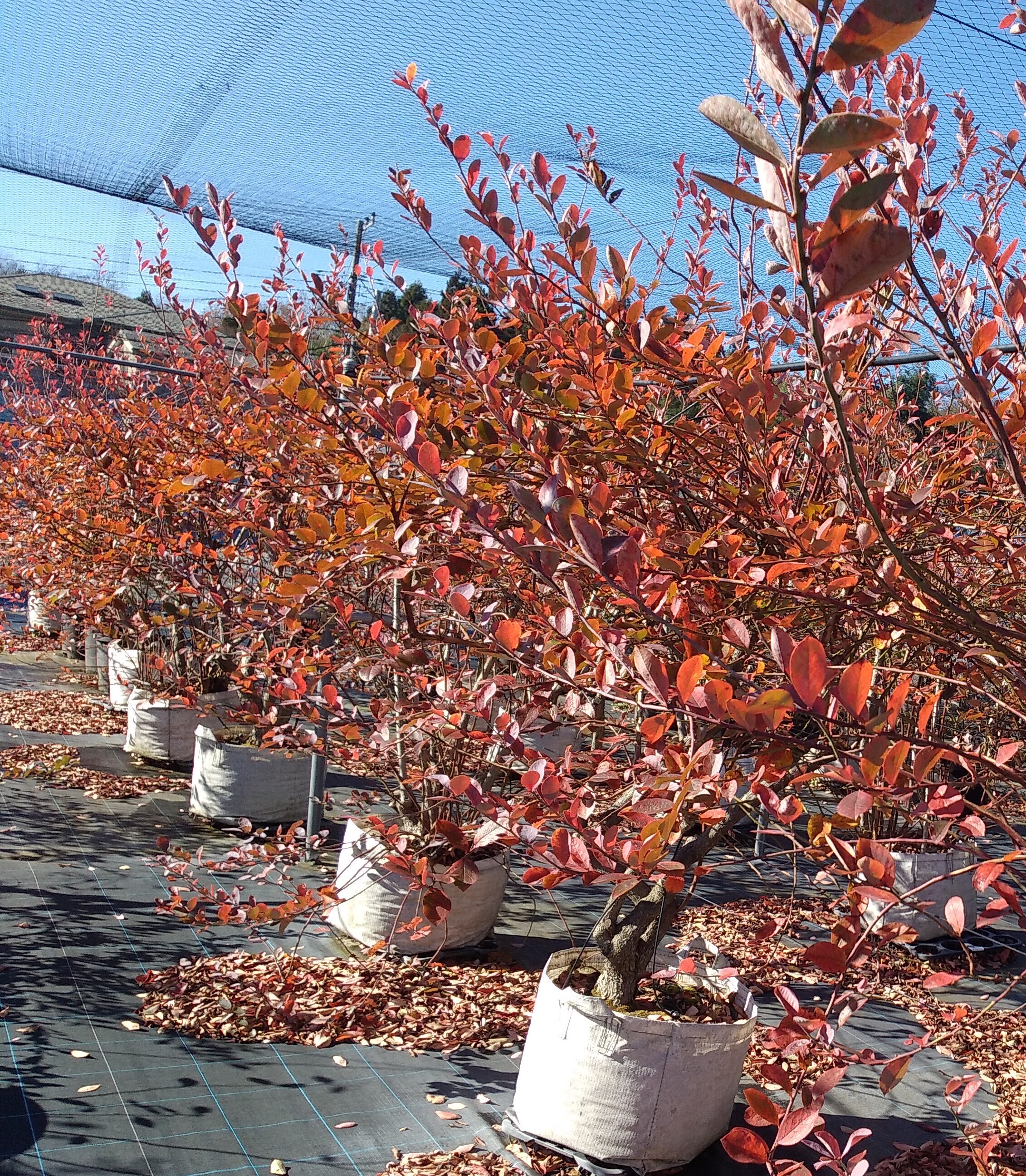 近頃めっきり寒くなりブルーベリーも紅葉が進み、剪定作業の季節になりました。