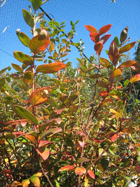 ブルーベリーは収穫が終わった初秋も旺盛に成長して背丈を越える大きさになりました。